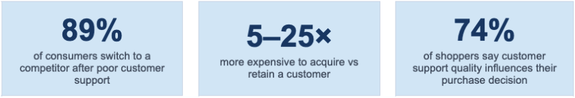 When response times are slow, agent quality is inconsistent, or customers are left without resolution, the downstream impact on LTV (lifetime value), NPS (Net Promoter Score), and repeat purchase rate is severe.