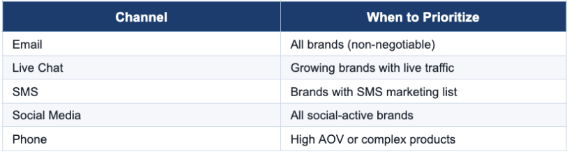 Modern eCommerce customers expect support on their terms — through whatever channel they're using at that moment. A multi-channel support strategy is essential, but not every brand needs every channel from day one. Here's how to think about prioritization.